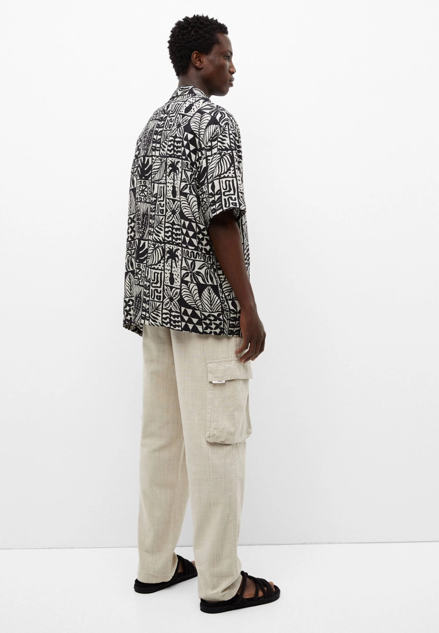 PULL & BEAR Floral Print- Overhemd – Black