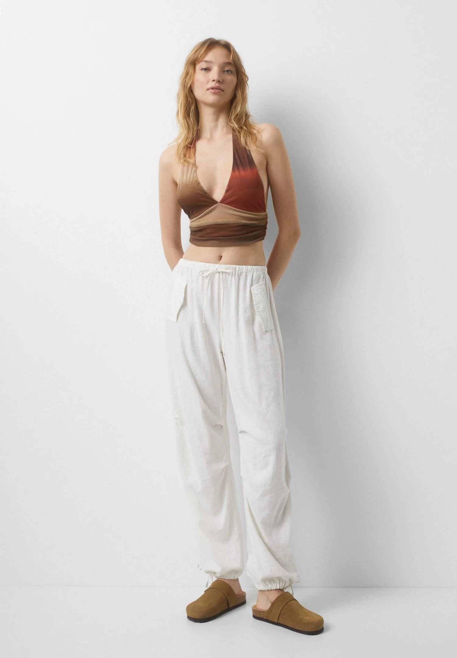 PULL & BEAR Halter – Crop – Blouse – Brown