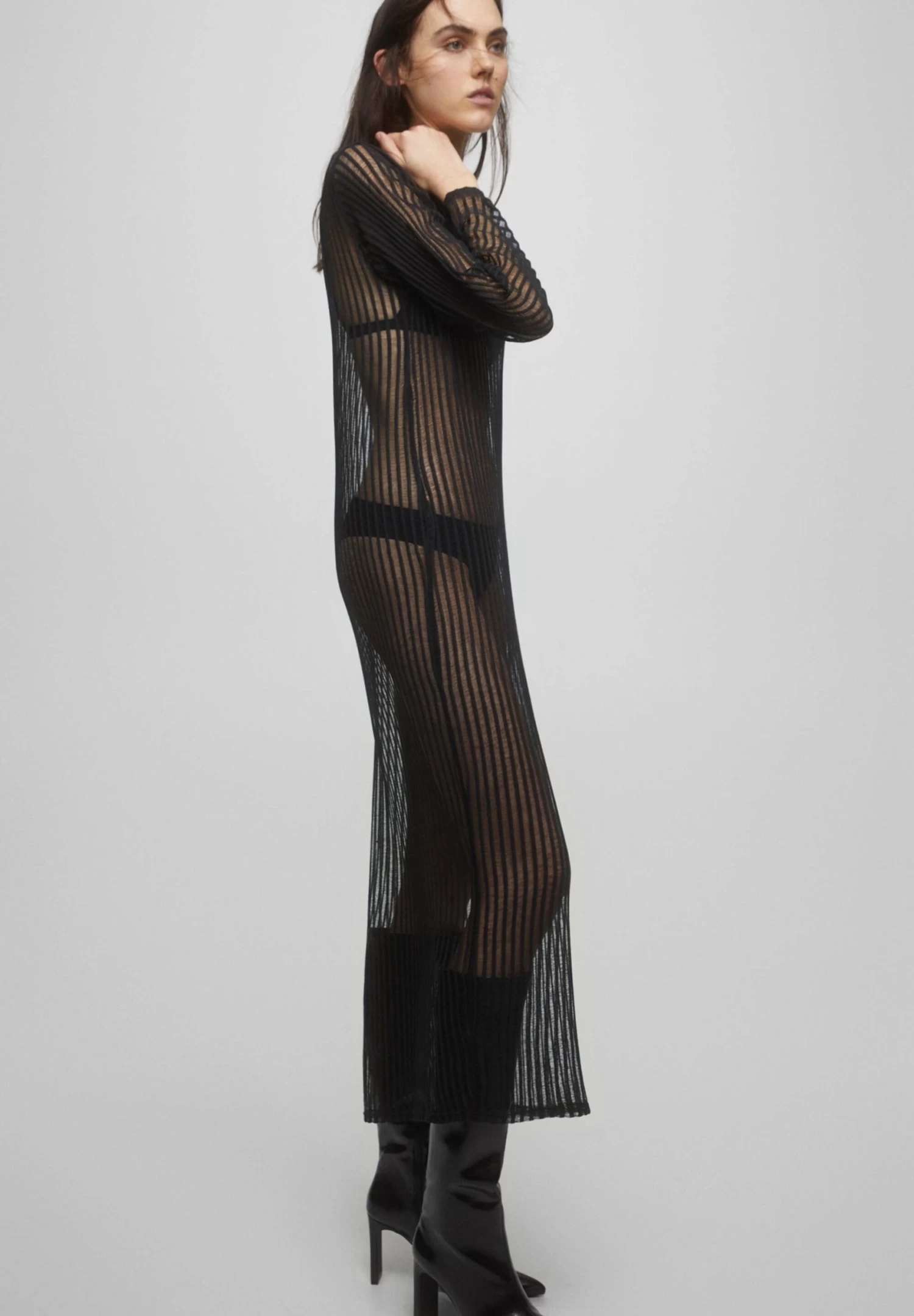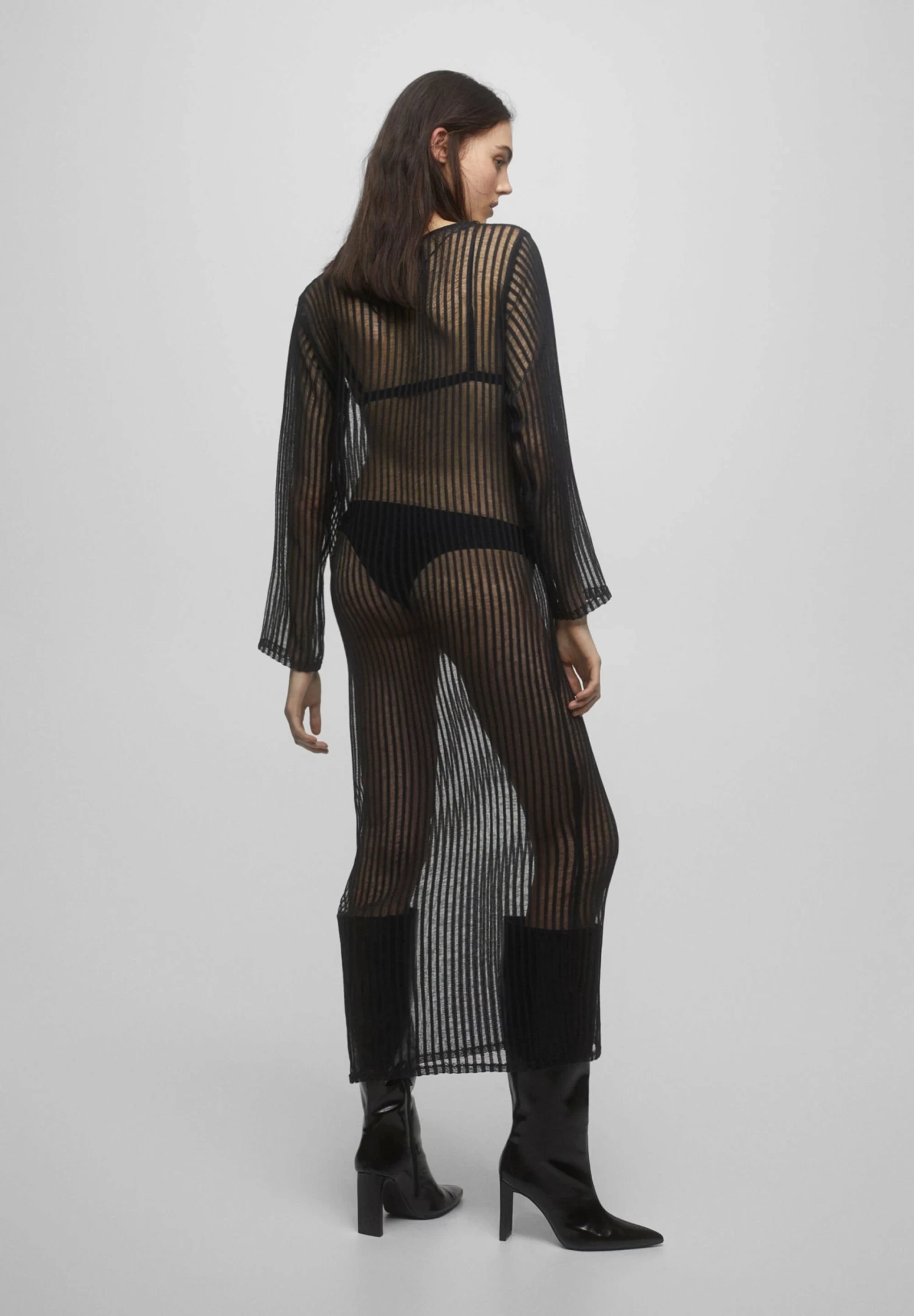 PULL & BEAR Long Sheer – Gebreide Jurk – Mottled Black