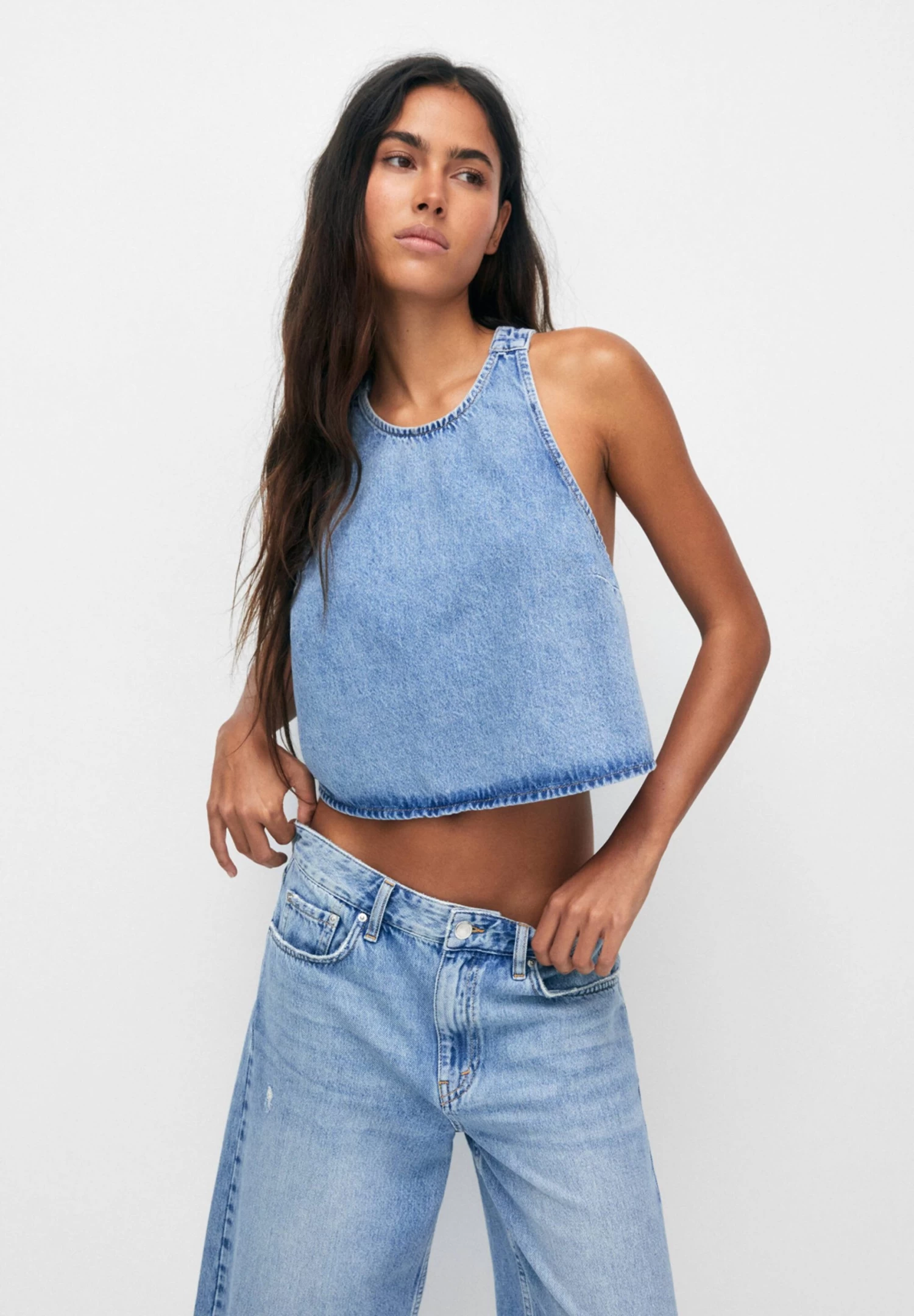 PULL & BEAR Open Back- Top – Blue Denim