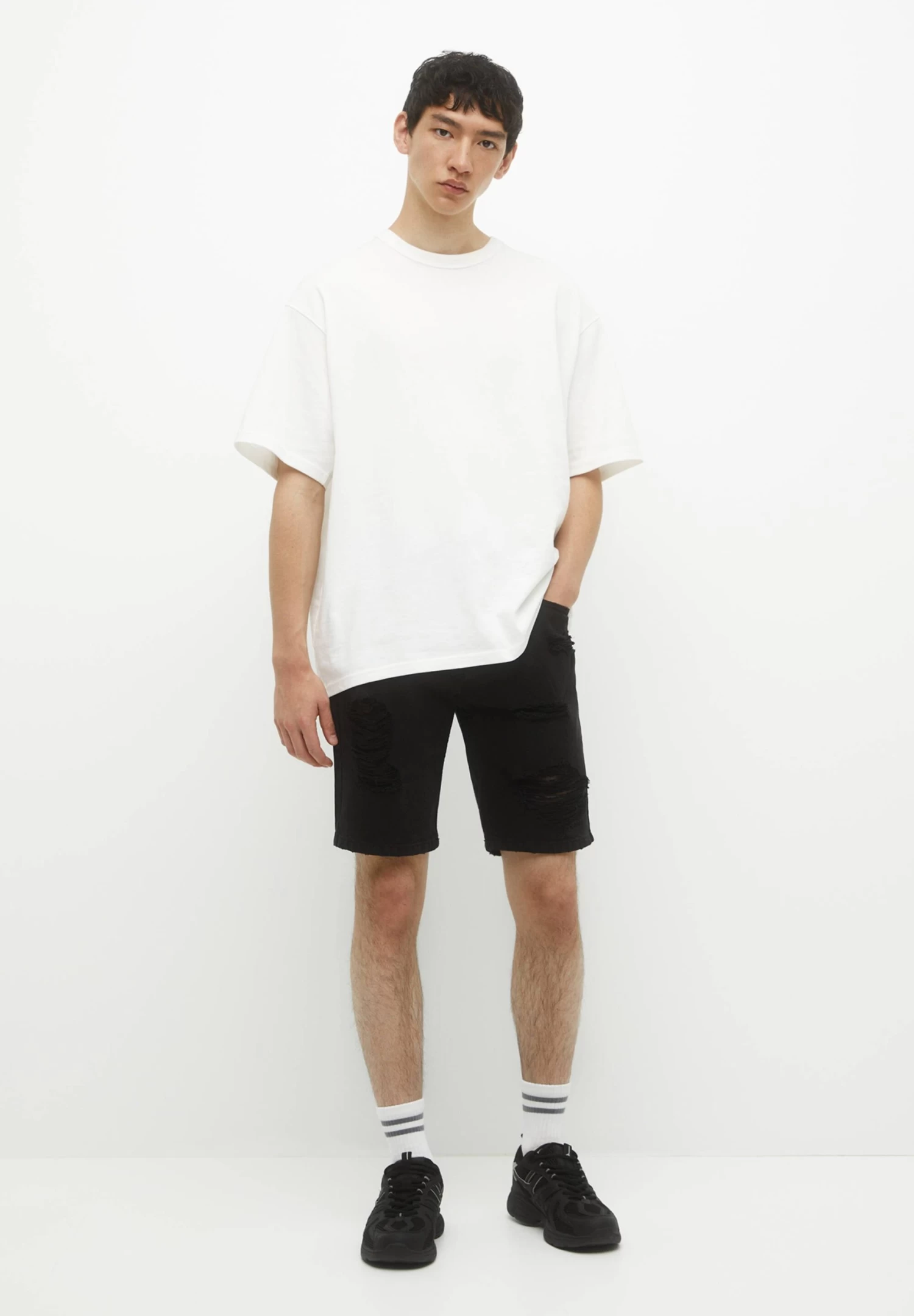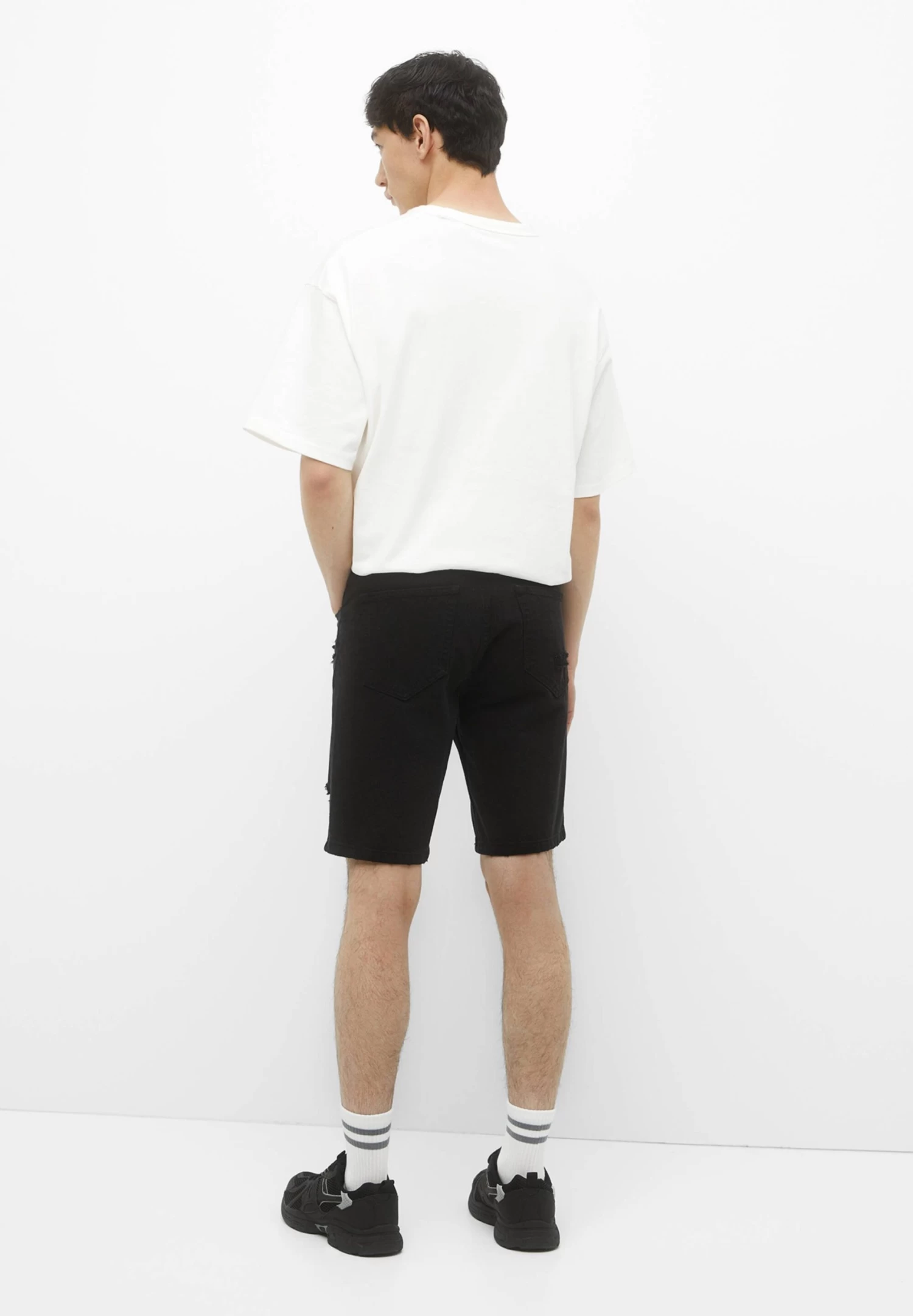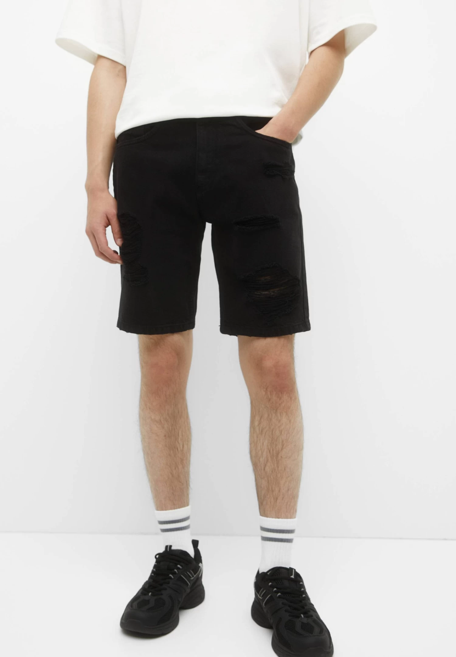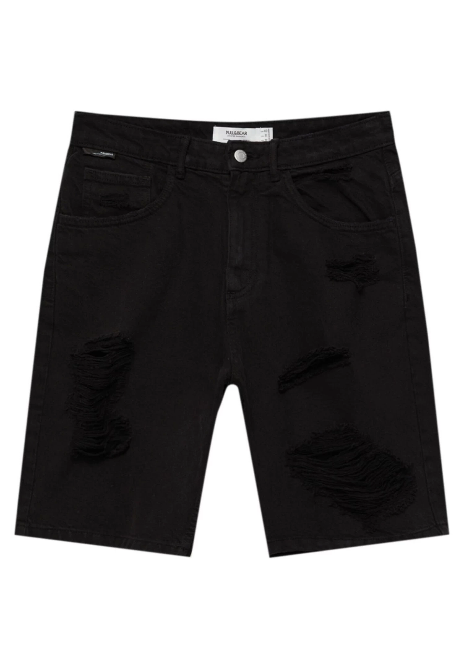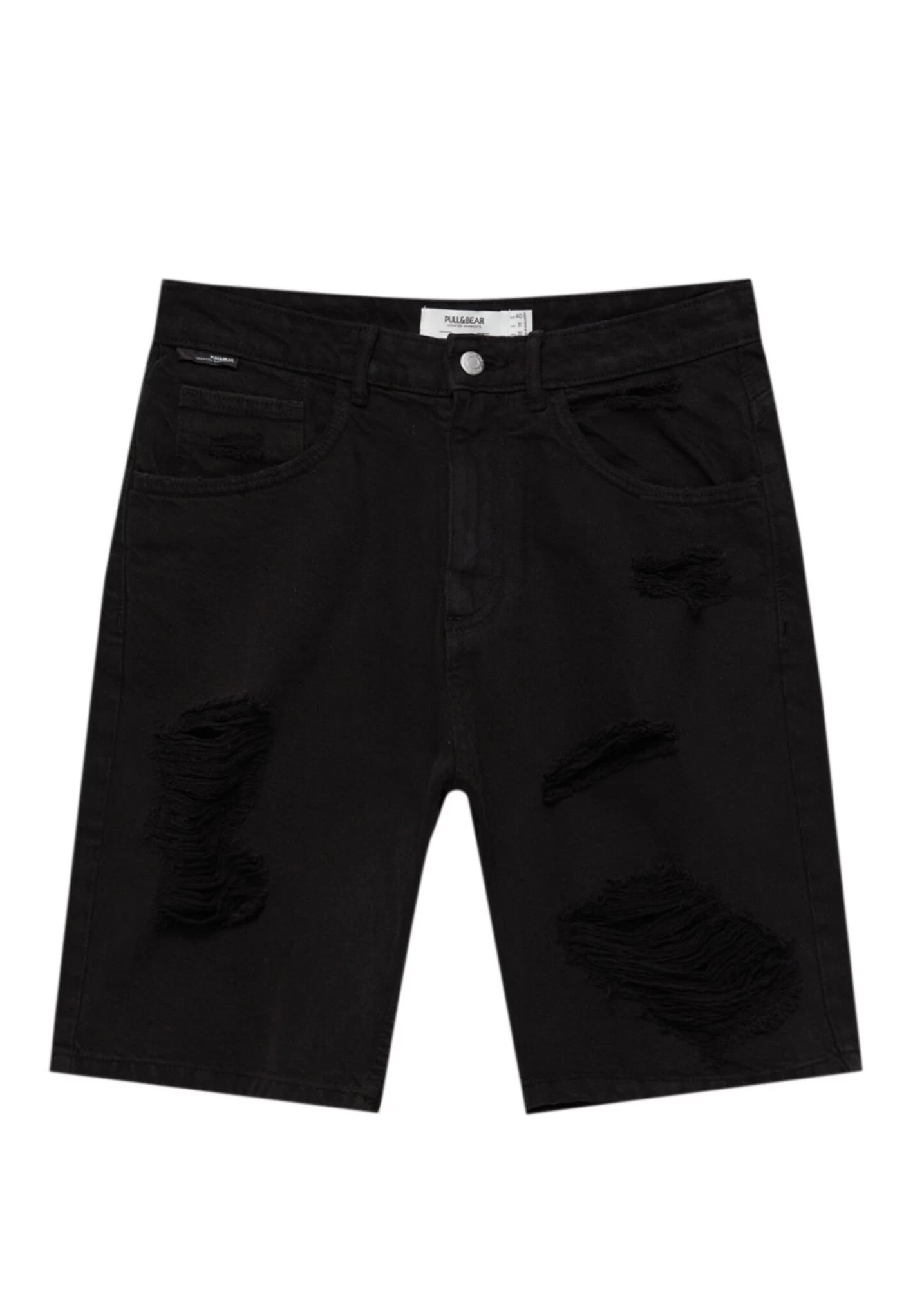 PULL & BEAR Ripped Bermuda- Jeansshort – Black