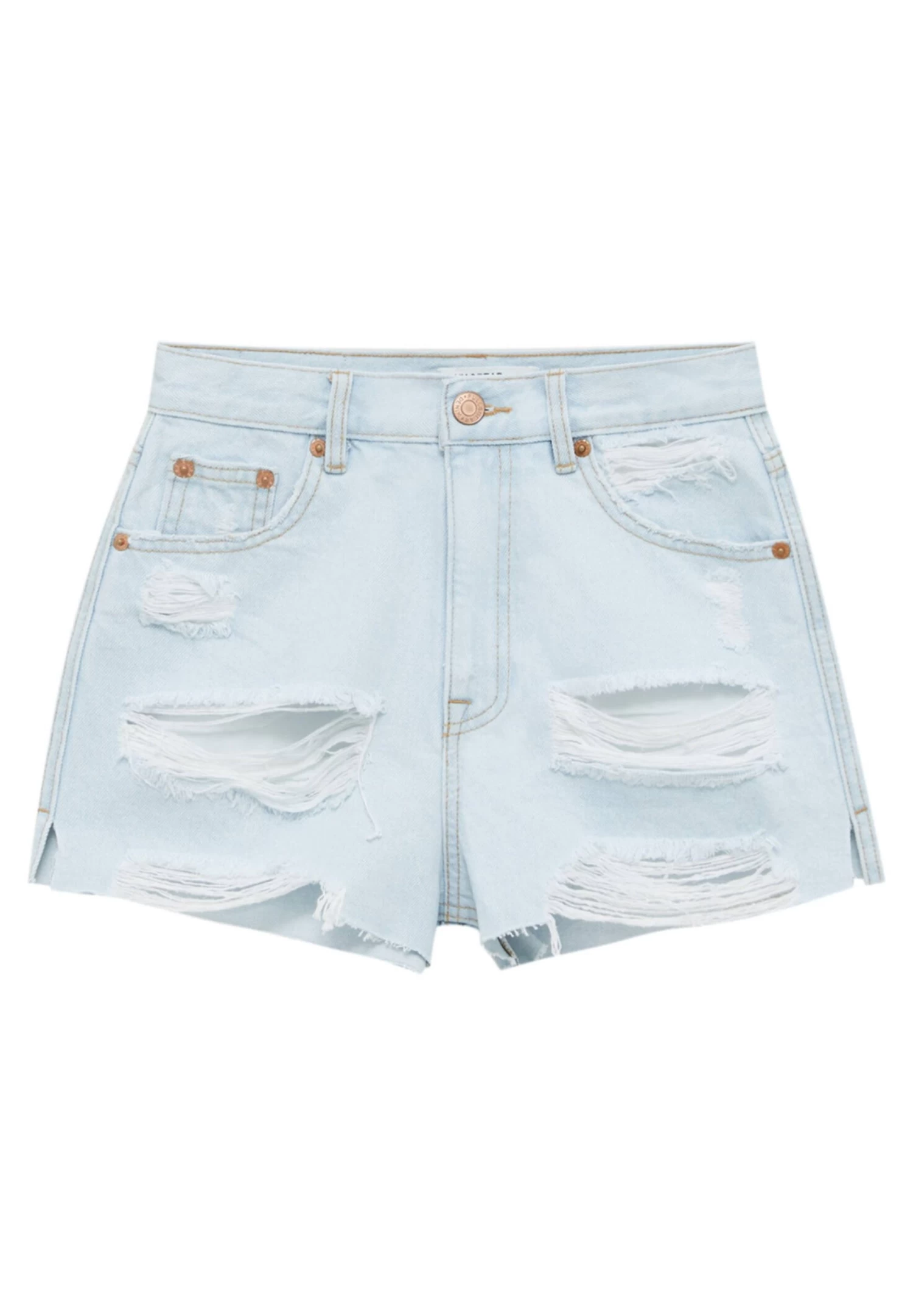 PULL & BEAR Ripped – Jeansshort – Stone Blue Denim