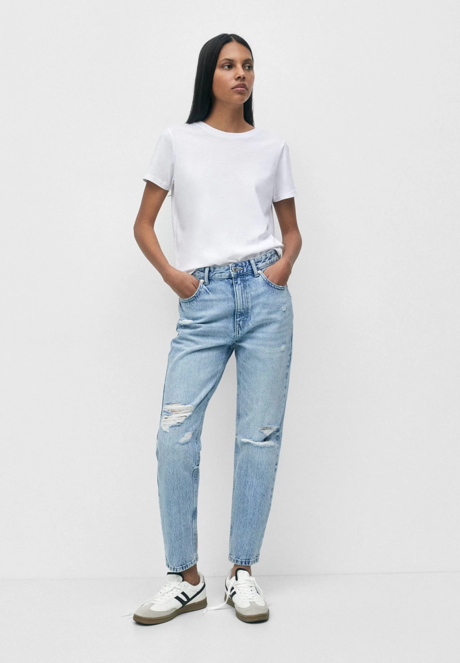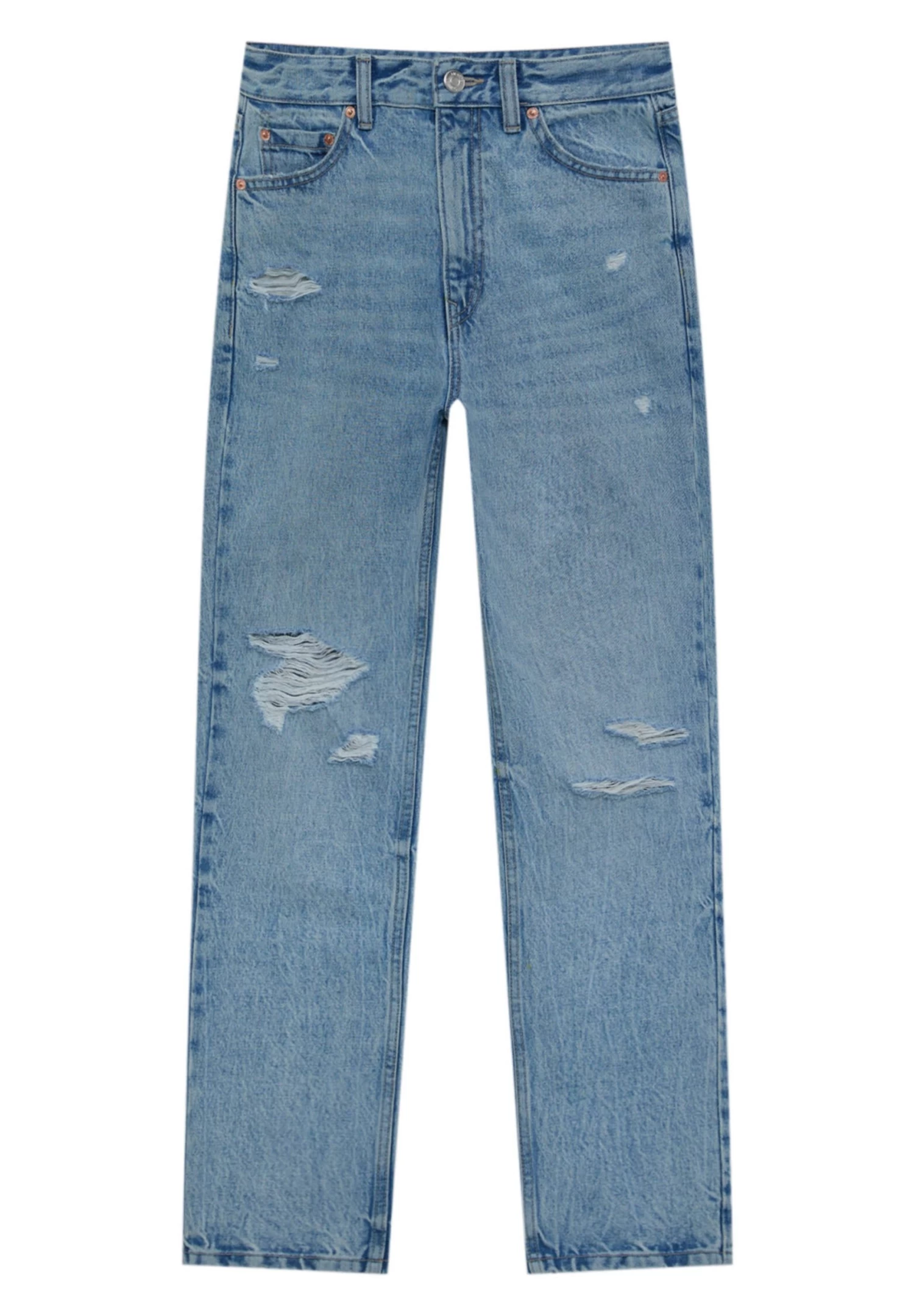 PULL & BEAR Ripped- Straight Leg Jeans – Stone Blue Denim