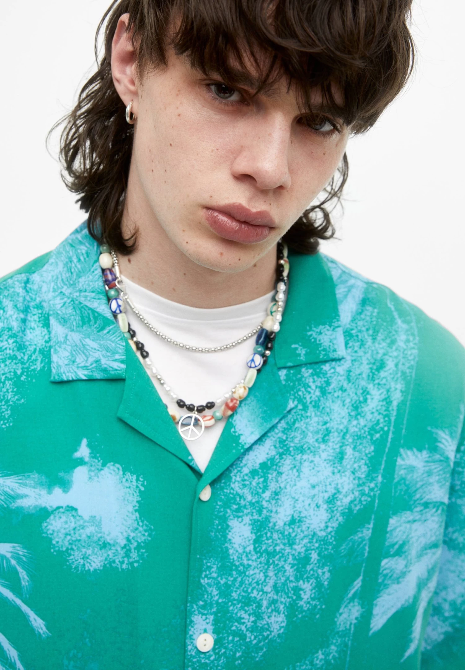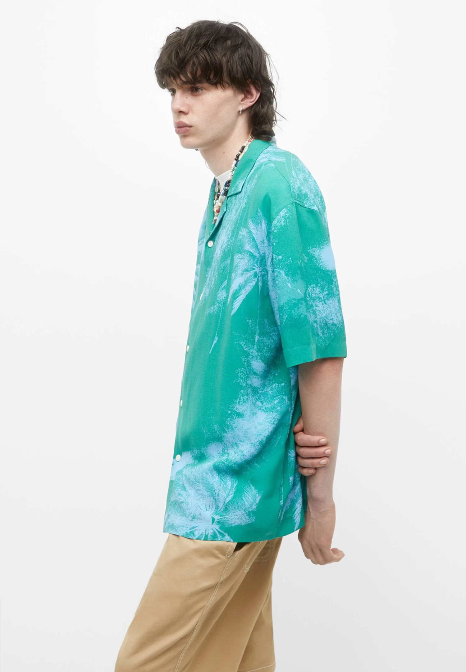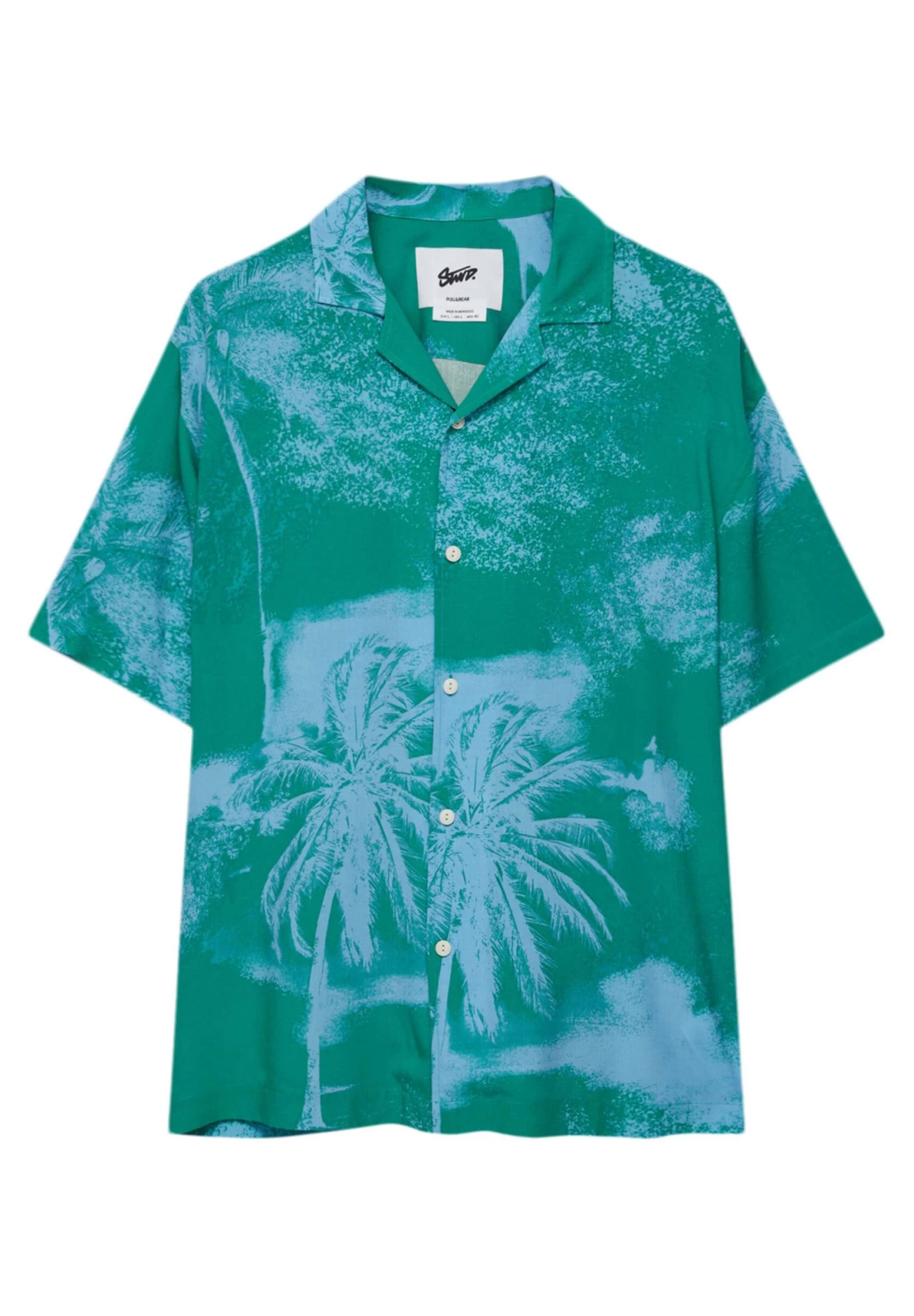PULL & BEAR Short Sleeve Stwd Palm Tree – Overhemd – Turquoise