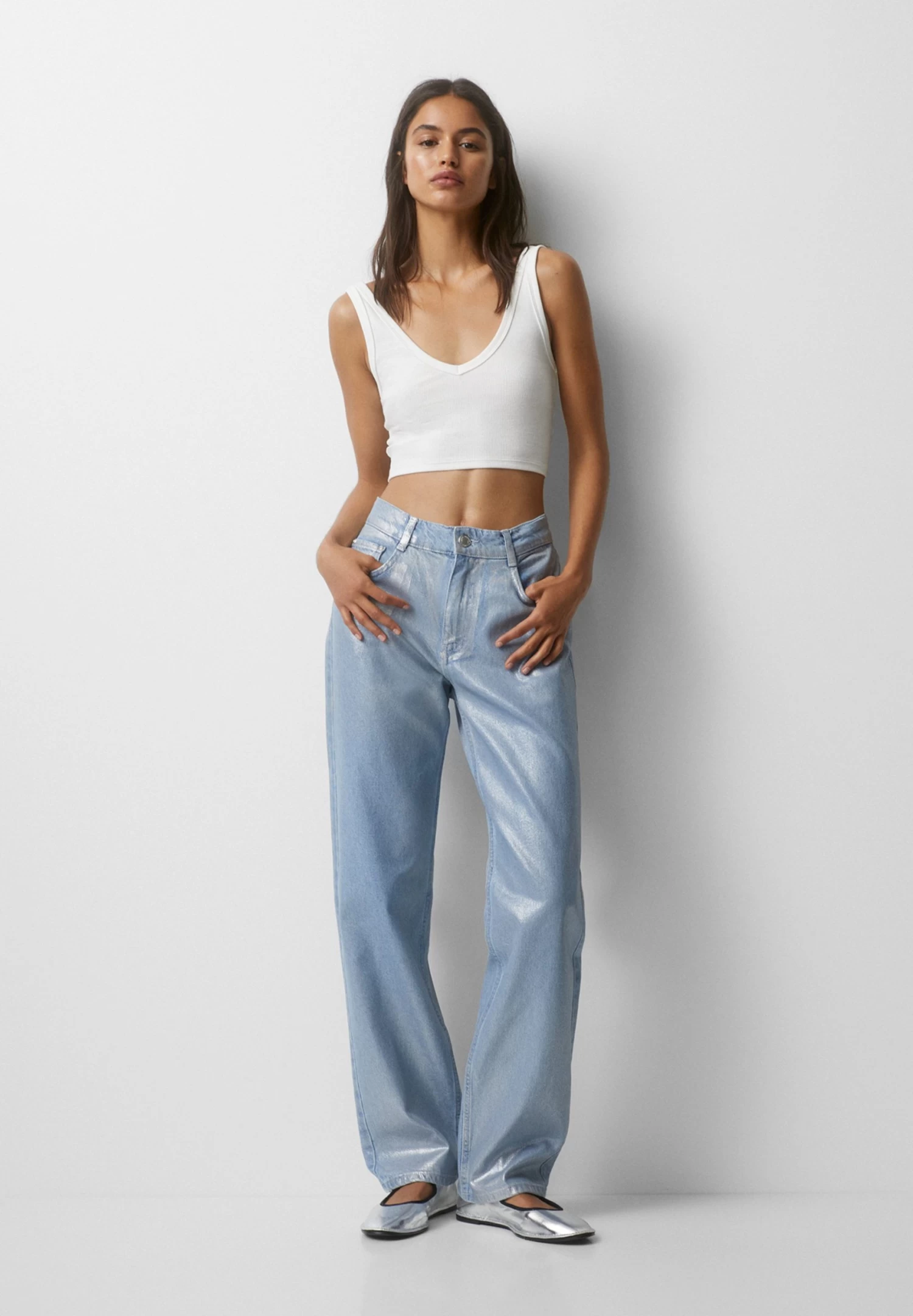 PULL & BEAR Straight Leg Jeans – Silver Coloured