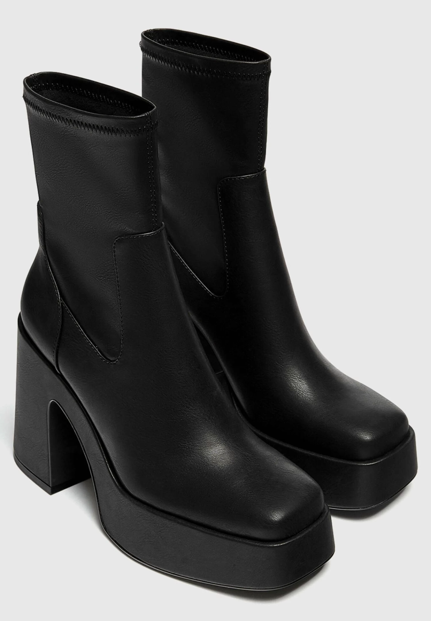 PULL & BEAR Stretch- Enkellaarsjes Met Plateauzool – Black